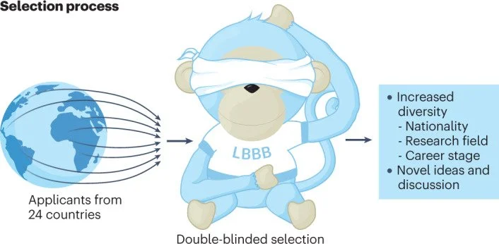The Blue monkey re-appears in Nat Rev Gastroenterol Hepatol, this time talking about the anonymisation process of LBBB applications: Alcaino, C, Carbone F, Neckel PH & Tjaden NEB. Nature Reviews Gastroenterology and Hepatology (2023). Feb; 20: 197-198. doi: 10.1038/s41575-023-00747-6